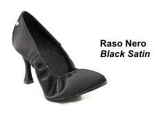 Dance Naturals style 200 Black satin 70mm (2.75") flared heel size 7 (European 40) Narrow fit - Now only £69.00 excl.VAT |