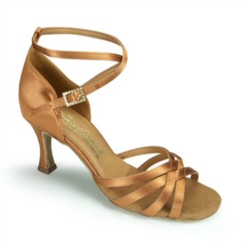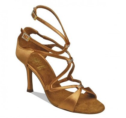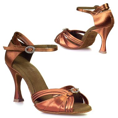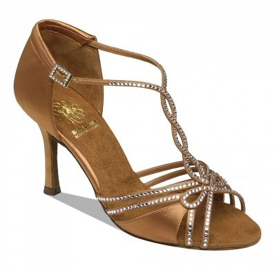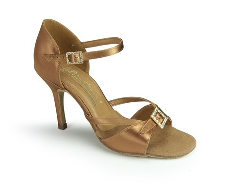 Supadance 1544 Dark Tan satin with Swarovski stones, 2.5" flare heel, size 3.5 - Now only £109.00 excl.VAT |
