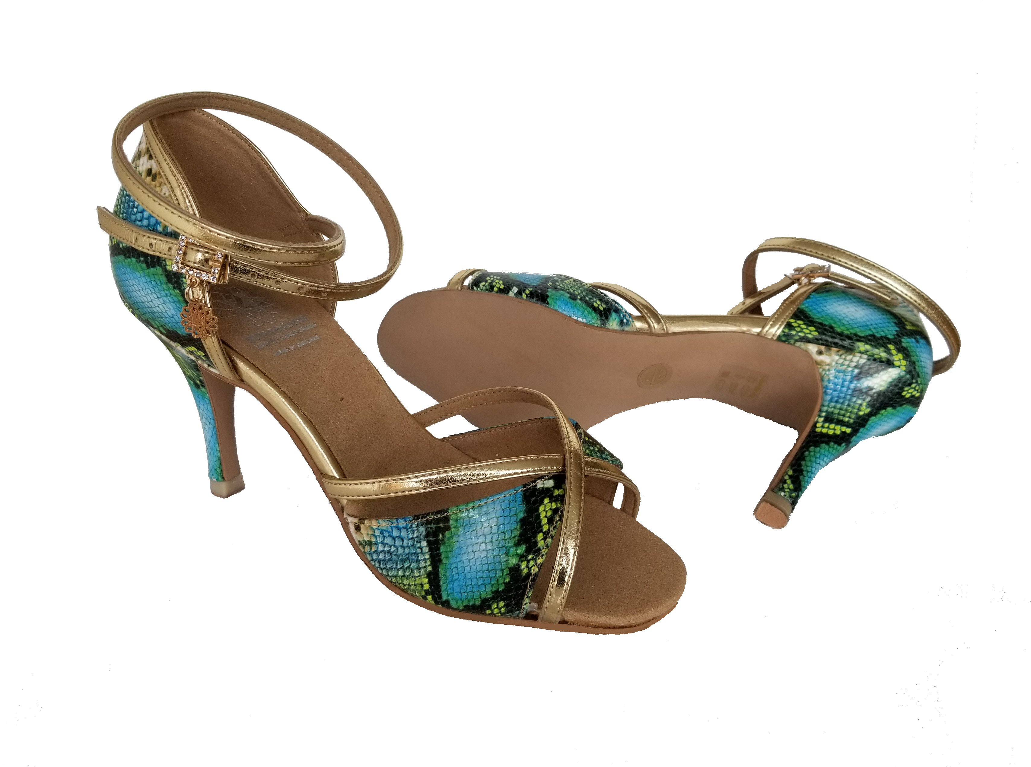 Supadance 1073 Blue snake/Gold leather 3" stiletto heel, labelled size 6, but in our opinion size 5.5, Leather soles - Now only £99.00 excl.VAT |