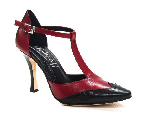 Volver 053 Joseline (for Argentine Tango) Black leather/Red leather 70B 70mm heel (2.75" at the back) (Volver heels explained) TANGO LEATHER soles, size 6.5 (Volver size 39, European 39.5) - Now only £49.00 excl.VAT |