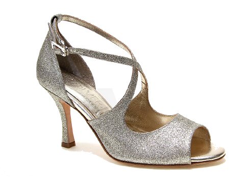 Volver 137 Marianne (for Argentine Tango) Silver Brill, Heel 70S 70mm (2.75" at the back) (Volver heels explained) SUEDE soles, size 3 (Volver size 35 European 36) - Now only £59.00 excl.VAT | | |