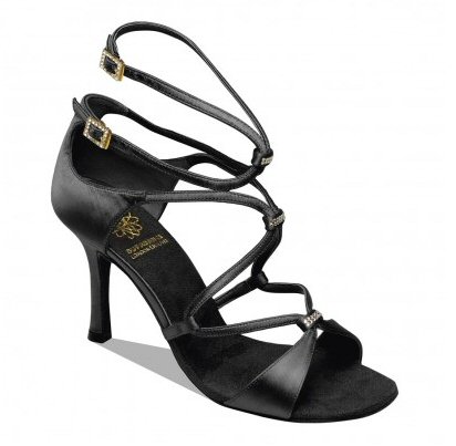 Style 1541 Black satin Price £125.00 excl.VAT Multi strap and Mesh sandal with Swarovski crystals. Square Diamond Hook Buckle. 2.5" flare heel. |