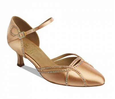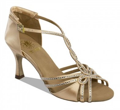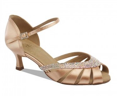 Style 1542 Flesh satin Price £125.00 excl.VAT With Genuine Swarovski Crystals. Square Diamond Hook Buckle. 2" flare heel. |
