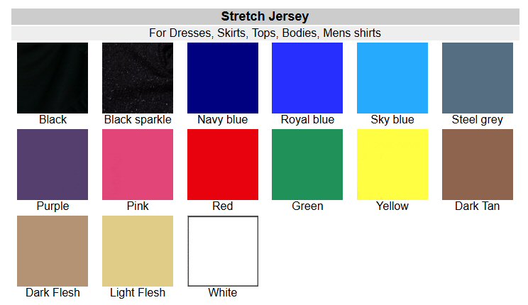 This version of our Round neck top comes with fancy, long sleeves. Available in any of the colours shown on the sampler. The top is shown with Juliet skirt, which is shown in our Latin section |