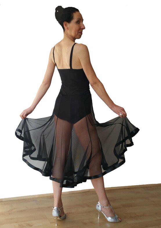 Sheer mesh, completely see-through, stretchy top with long sleeve.