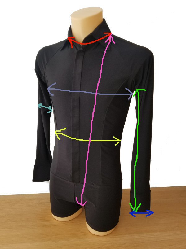 - Collar 15in (38cm) - Chest 36in (92cm) - Waist 34in (86cm) - Sleeve 22in (56cm) - Body length 31in (79cm)