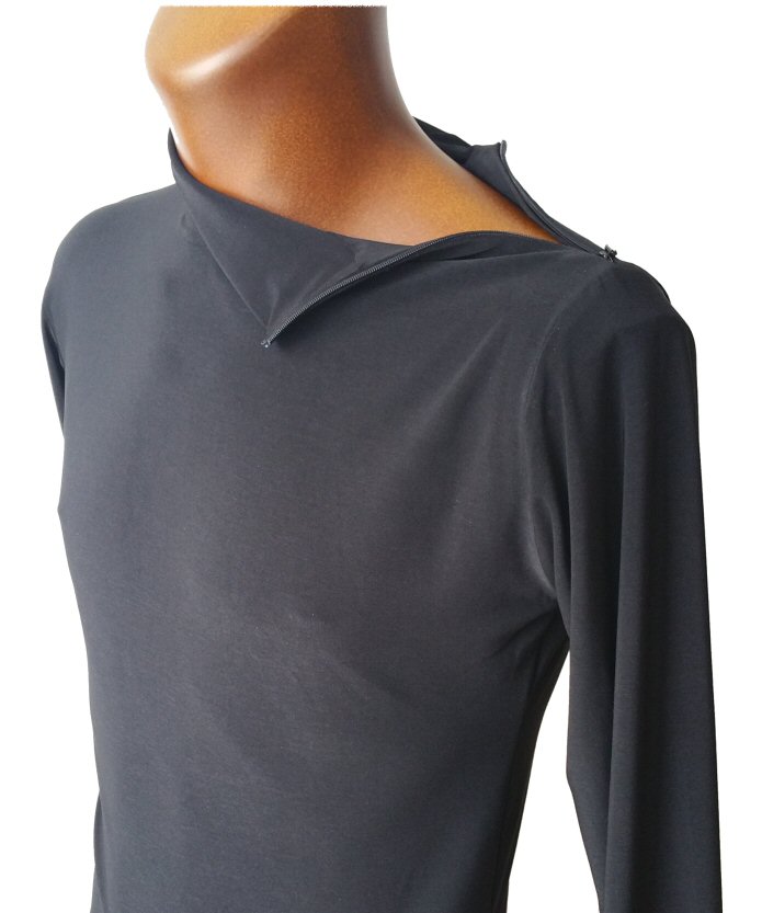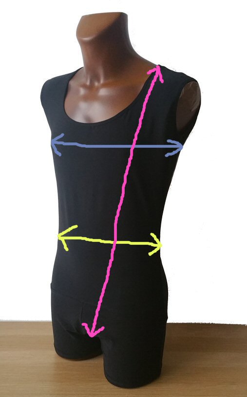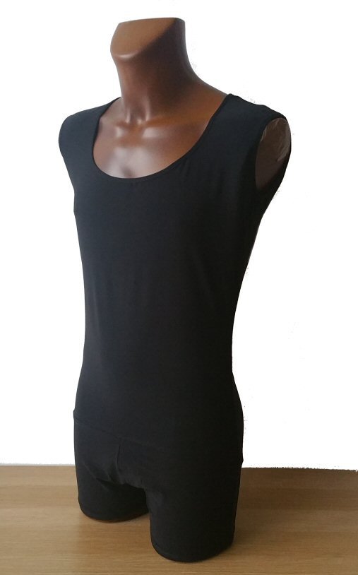 Body shirt built on shorts with zip and unique black/silver motif around the front line. Machine washable. |