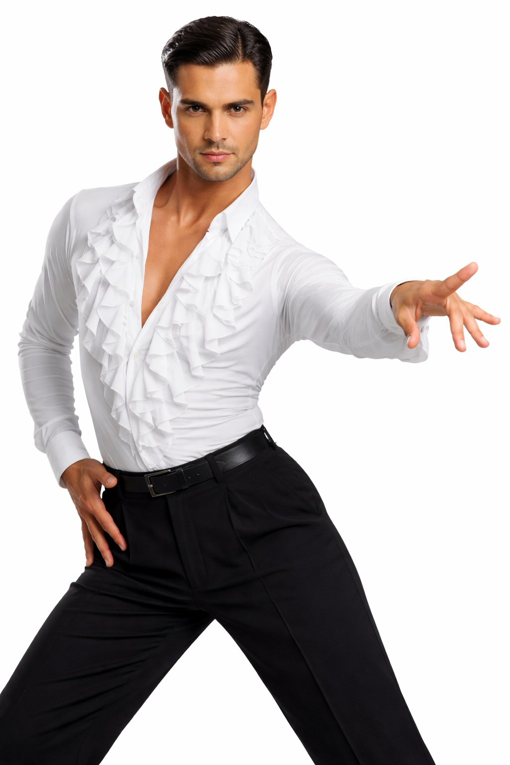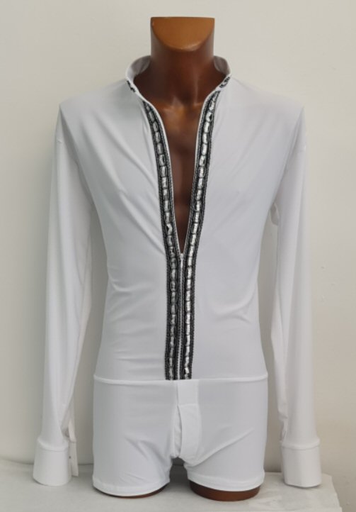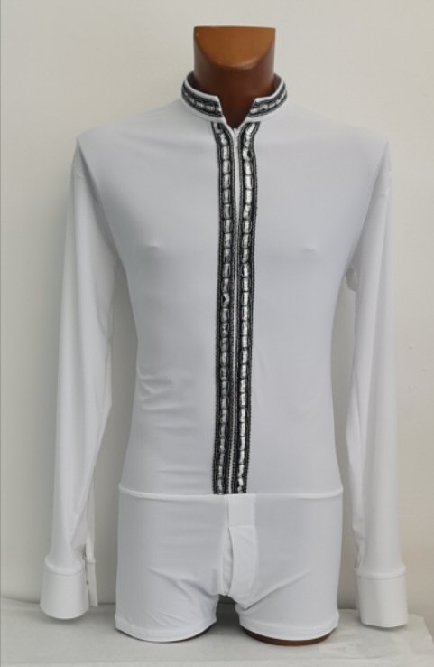 This latin body shirt comes with satin collar, cuffs and two breast pockets. |