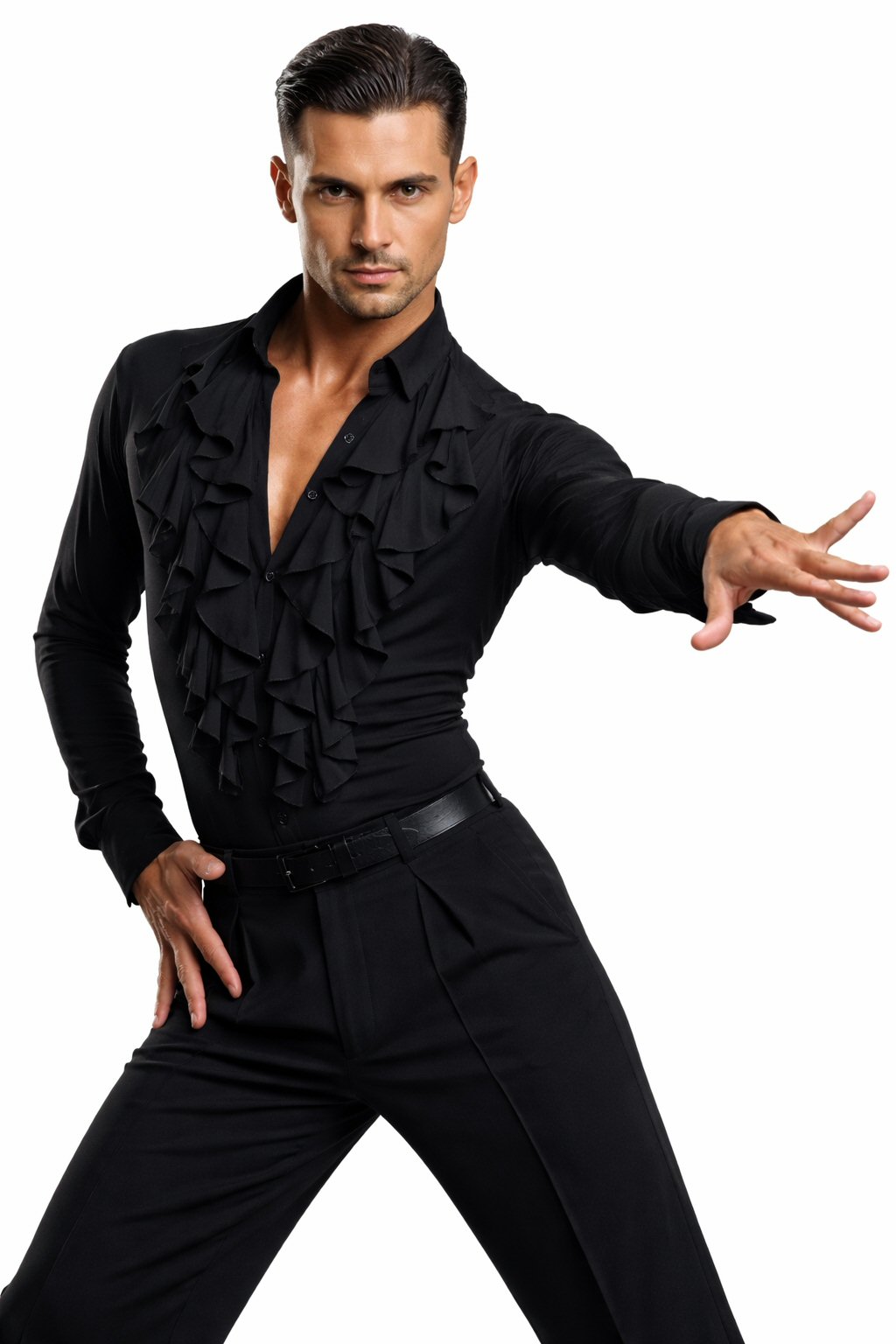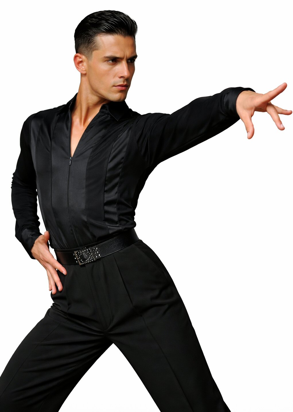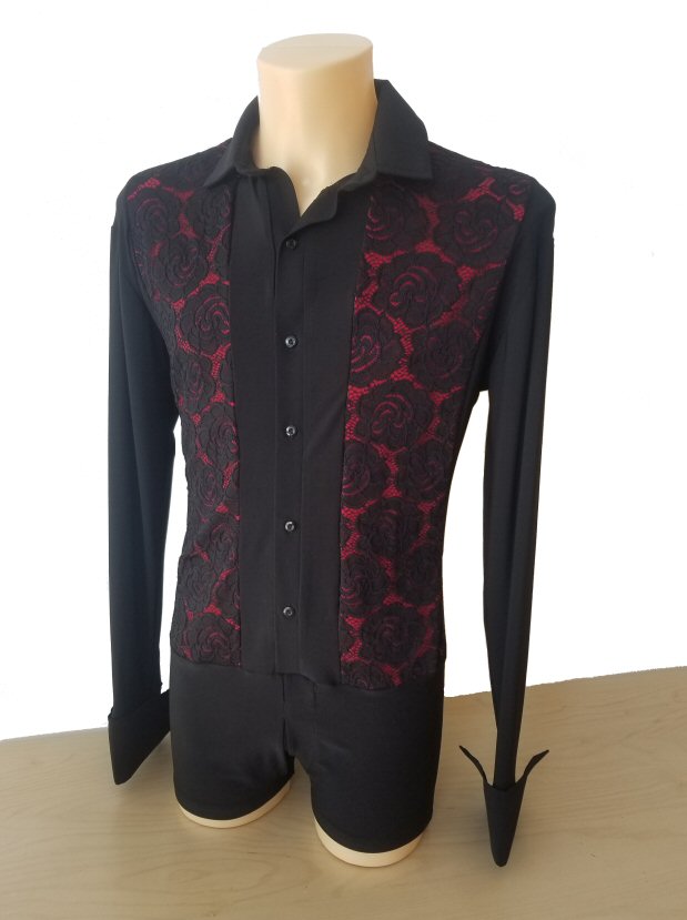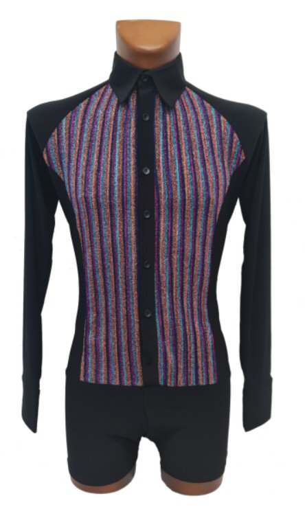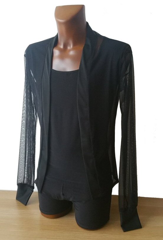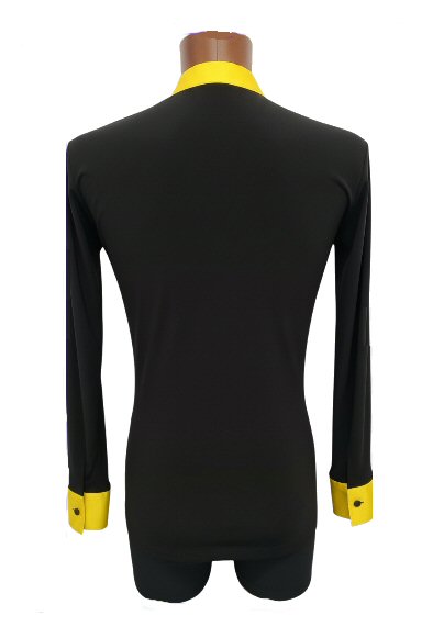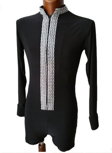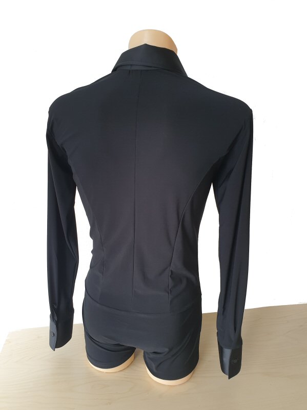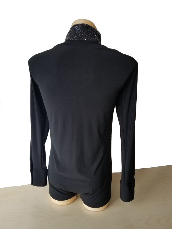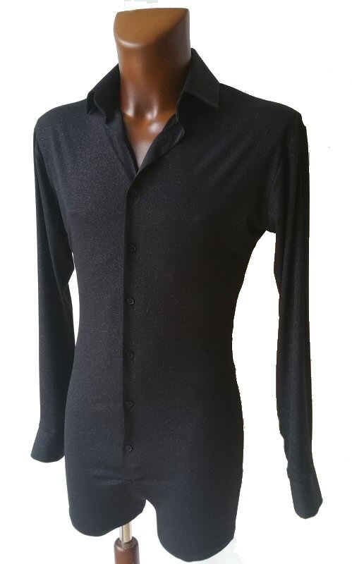 Black Snake effect Raglan cut, stretchy Latin shirt on shorts. Single cuff with button. Black. |
