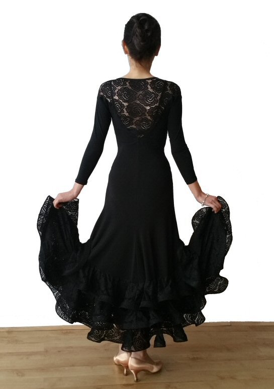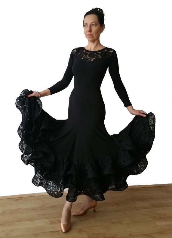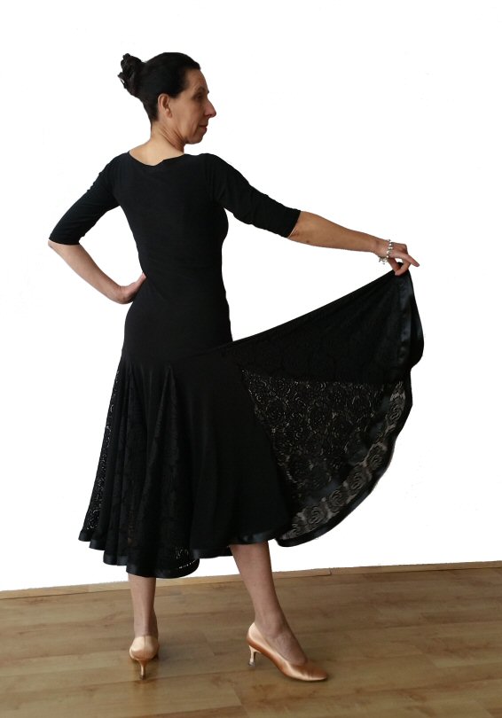 Black Ballroom dress lace godets Black Ballroom dress with lace godets