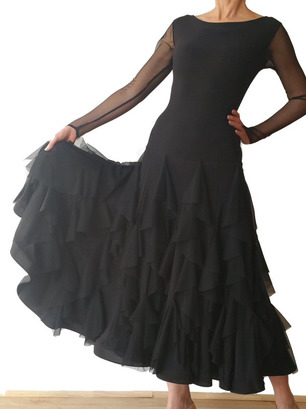 Black Ballroom dress with net godets Black Ballroom dress with net godets