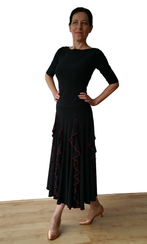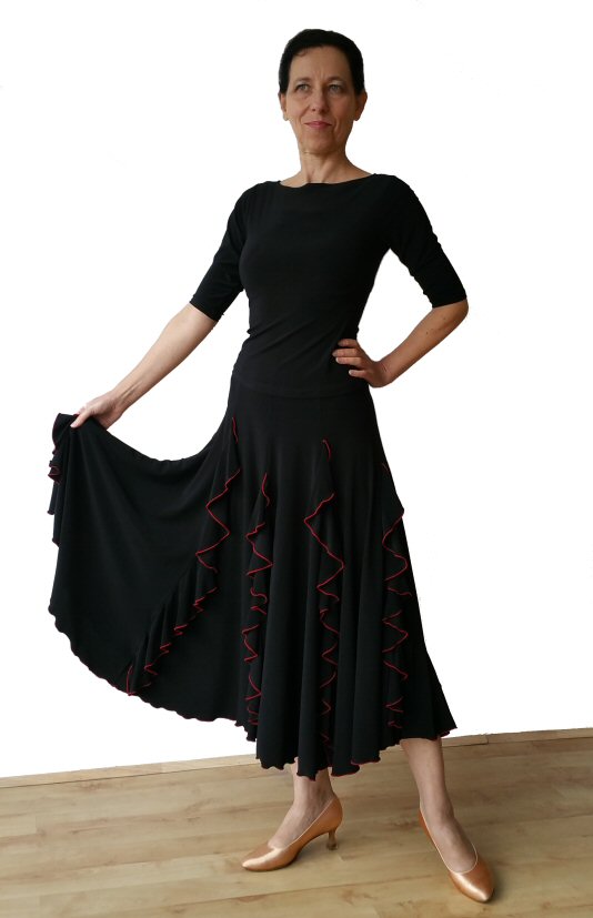 Ballroom skirt with vertical frills. Black/Red Ballroom skirt with vertical frills. Black/Red