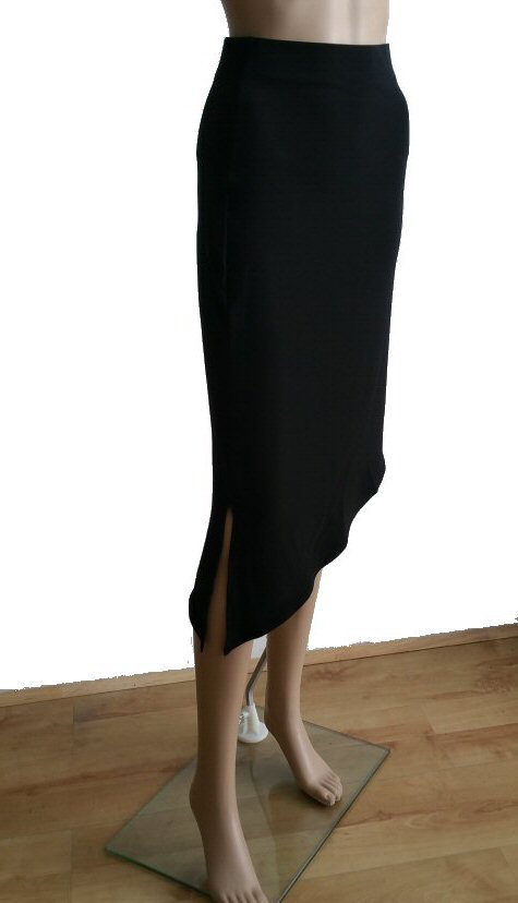 Soft, body friendly stretch crepe. This skirt has the same cut as the lower part of DR026 with a small slit on the longer side. Model height is 5ft 5in (165cm) and her skirt length is: From waist to the longest point 84cm (33"), to the shortest place 56 cm (22"). Other lenghts available too. It be worn with the longer side either on the left or on the right.