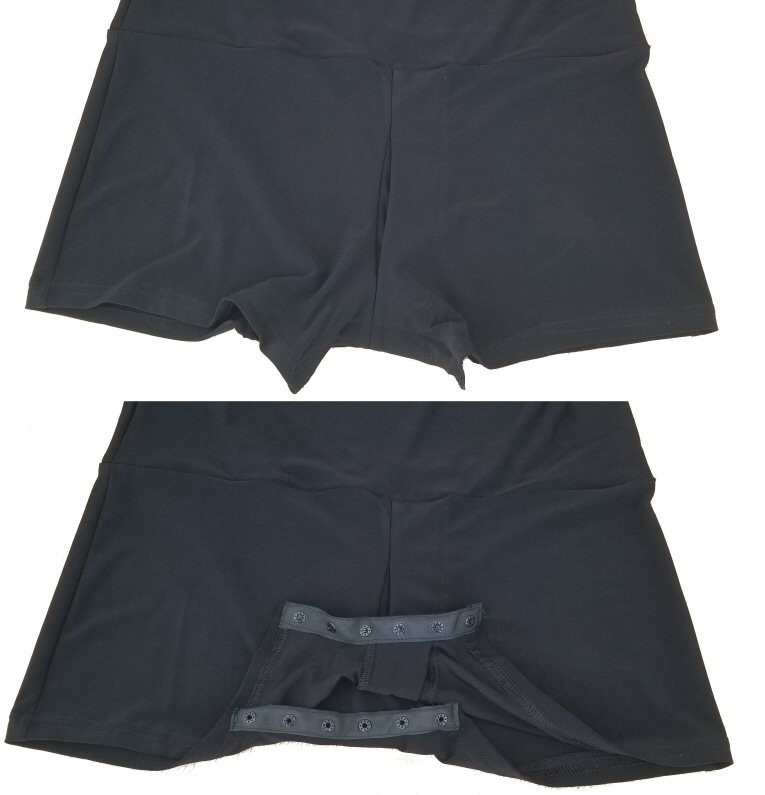 Soft, body friendly stretch crepe. Zip fastening at front goes from the base of the neck all the way down to the crotch. This is a full body shirt built on shorts, so it will never pull out of your trosuers.