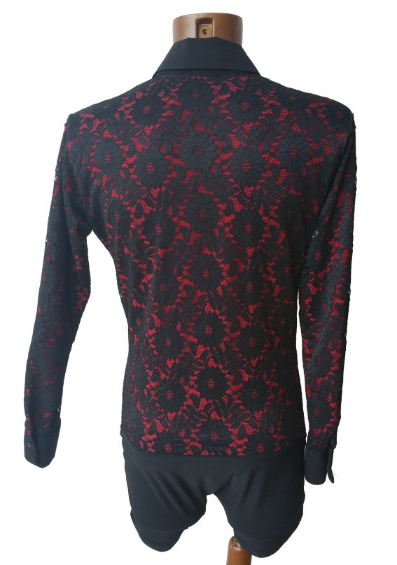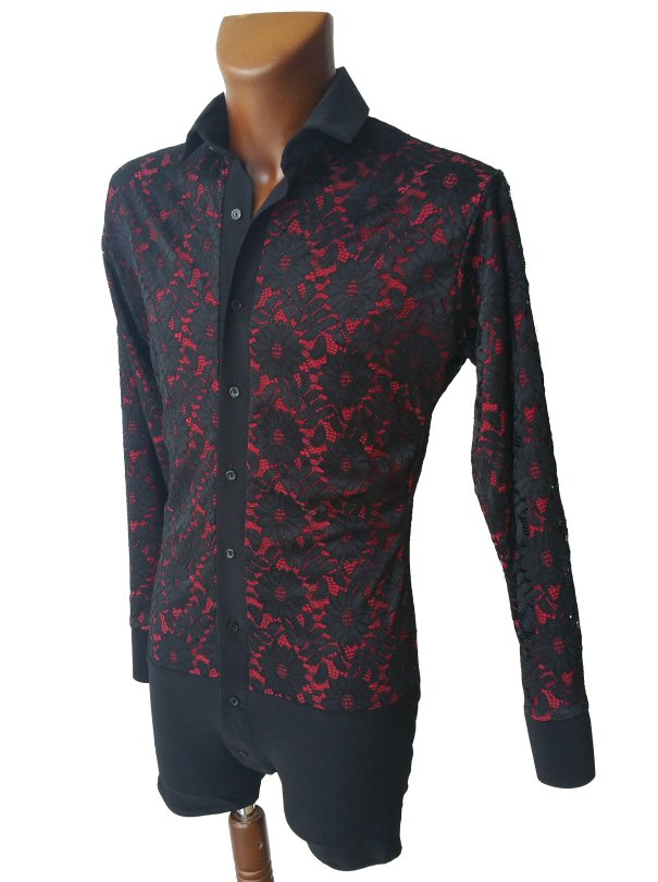 E-MS097BR Black Lace over Red underlay Mens Body shirt - Price £99.00 excl.VAT