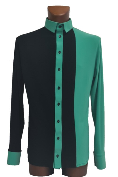 Blue Satin trim Latin show shirt Green Satin trim Latin show shirt