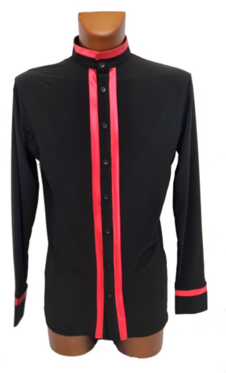 Red Satin trim Latin show shirt Black Satin trim Latin show shirt