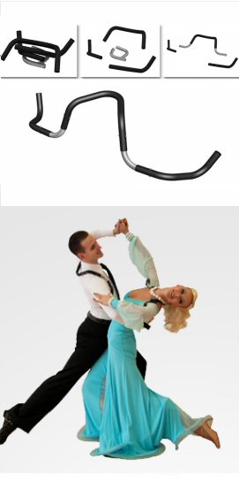 The Topline dance frame has been around for a couple of years. We have been a little sceptical at first, but we have recently seen an impressive progress a group of young dancers made to their ballroom top lines using this frame and the conclusion is simply overwhelming: It really works! The Topline dance frame is a revolutionary training aid. It develops muscle memory, promotes full body rotation and enhances your body shape. Use it regulary at your practice by simply dancing in it. The frame will keep your top line immaculate. Your muscles will memorise the position. Towards the end of your practice remove the frame and dance the same routines without it. Do it regulary and your top line will be transformed from average to immaculate within a couple of months. The topline frame is light and easy to carry. It has a modular construction and disassembles quickly and easily into parts which you can fit into a small box. Suitable for both male and female dancers, although it is more beneficial when used by the male (the leader). Designed and made in Britain. Available in 3 sizes for children and adults.
