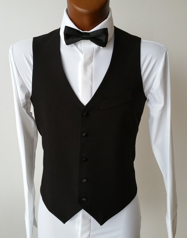 Once you start wearing the Heavenly stretchy waistcoat for your Ballroom practice you will not believe how you could live without it before. It gives you beautiful body lines and stretches in all directions without restricting your movements. The waistcoat is shown with E-MS170 shirt and Bow tie (not included). This waistcoat is made from the same fabric and perfectly matches our E-MTR142 Heavenly stretchy Practice trousers The fabric is totally crease resistant and easy care: Machine washable, Dries quickly and does not require ironing. |