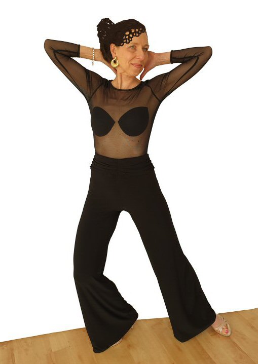 Sheer mesh, completely see-through, stretchy top with long sleeve.