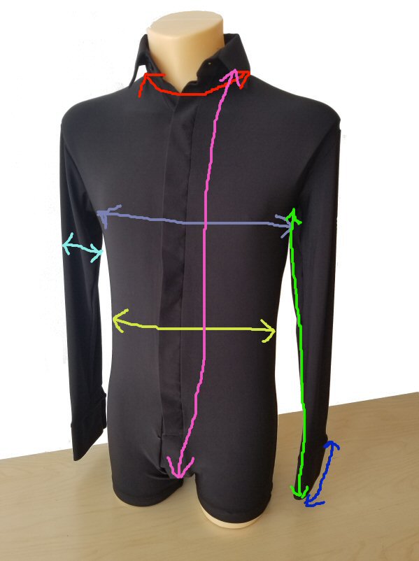 - Collar 15in (38cm) - Chest 36in (92cm) - Waist 34in (86cm) - Sleeve 22in (56cm) - Body length 31in (79cm)
