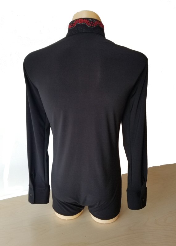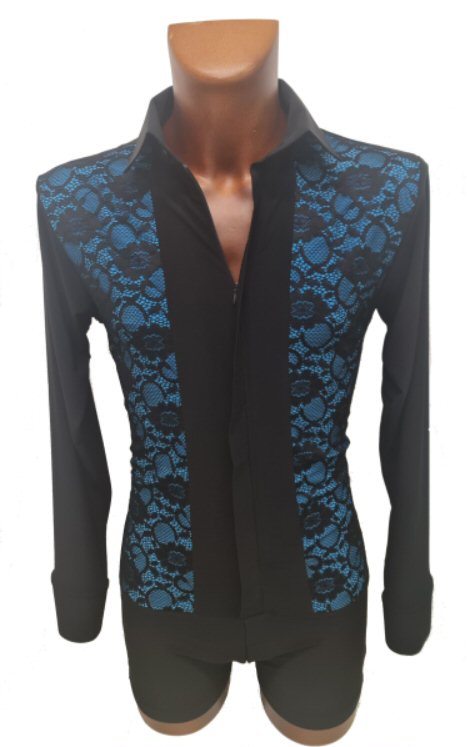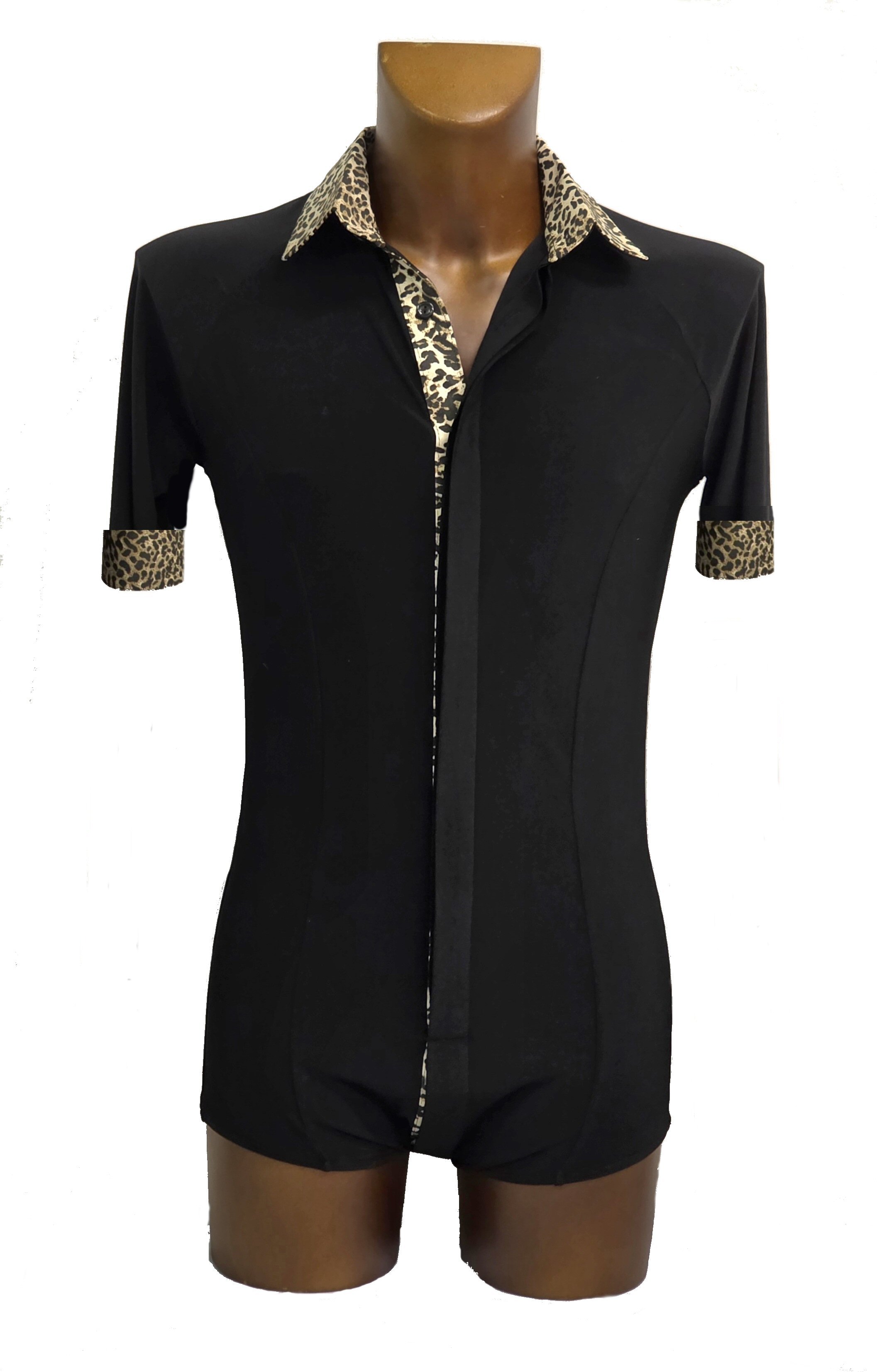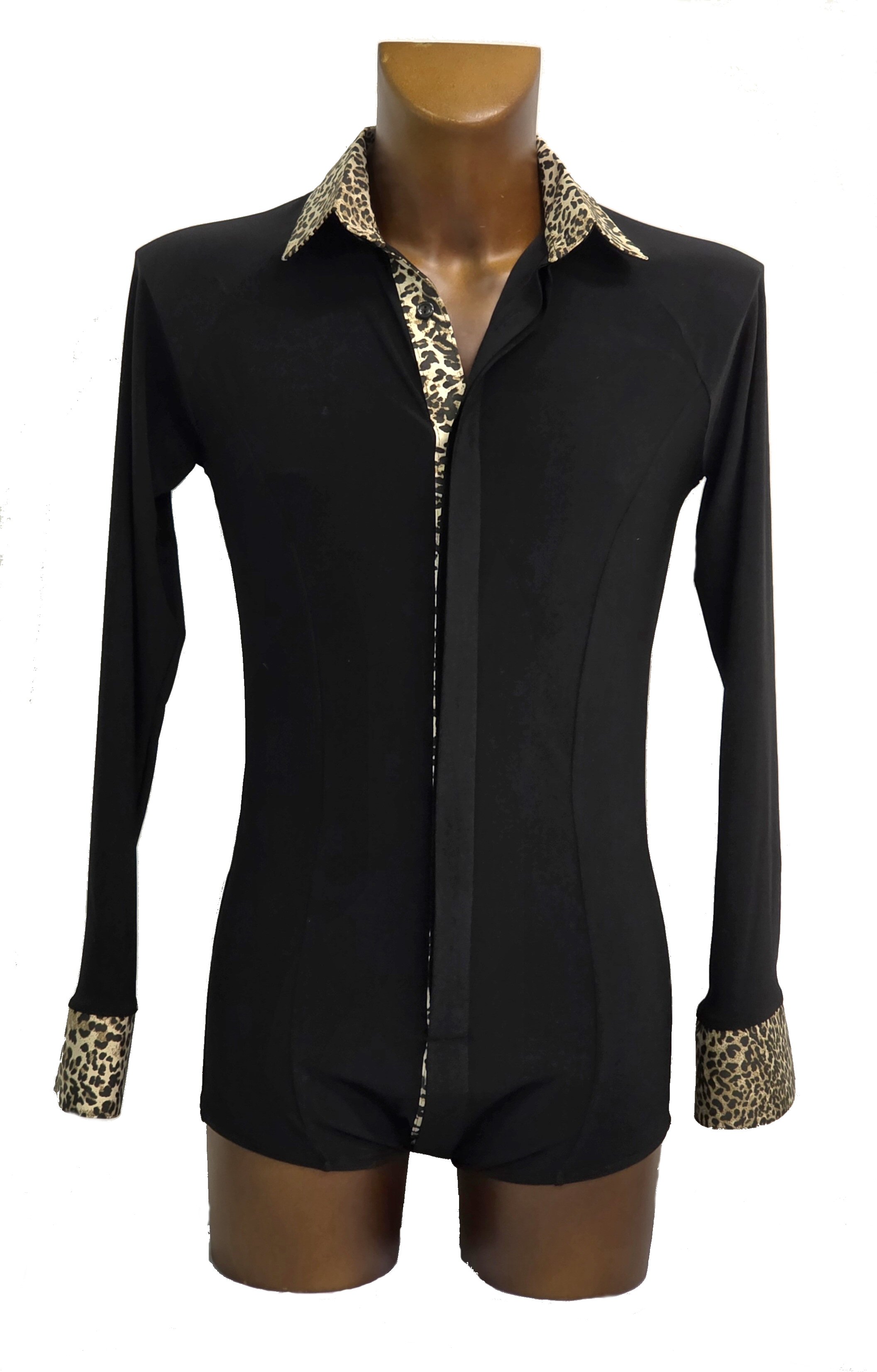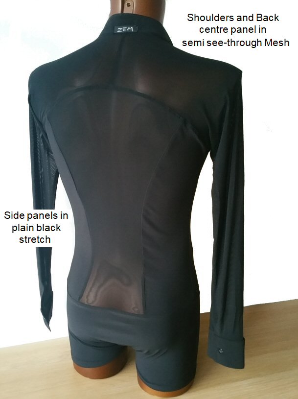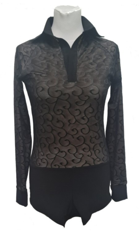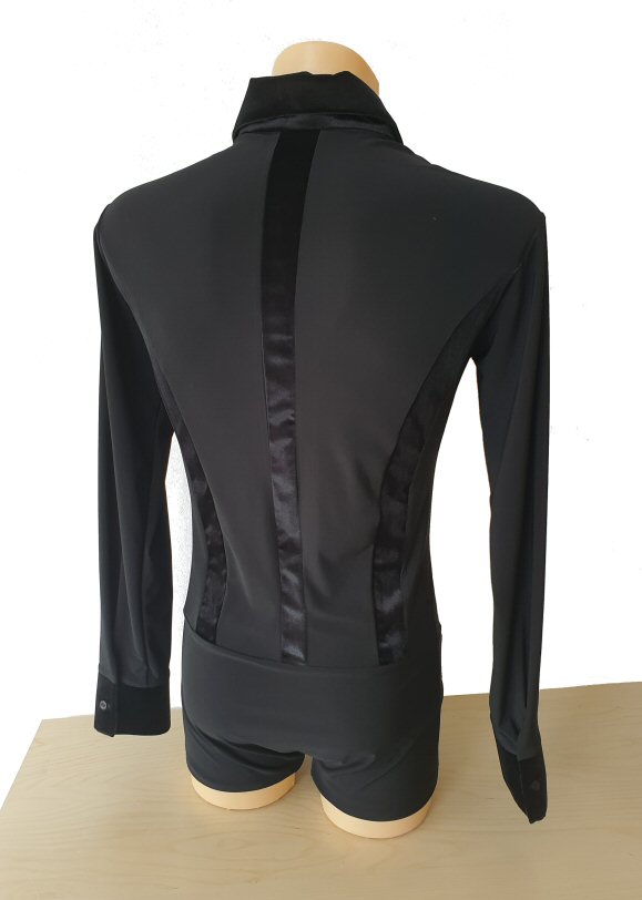Black Snake effect Raglan cut, stretchy Latin shirt on shorts. Single cuff with button. Black. |