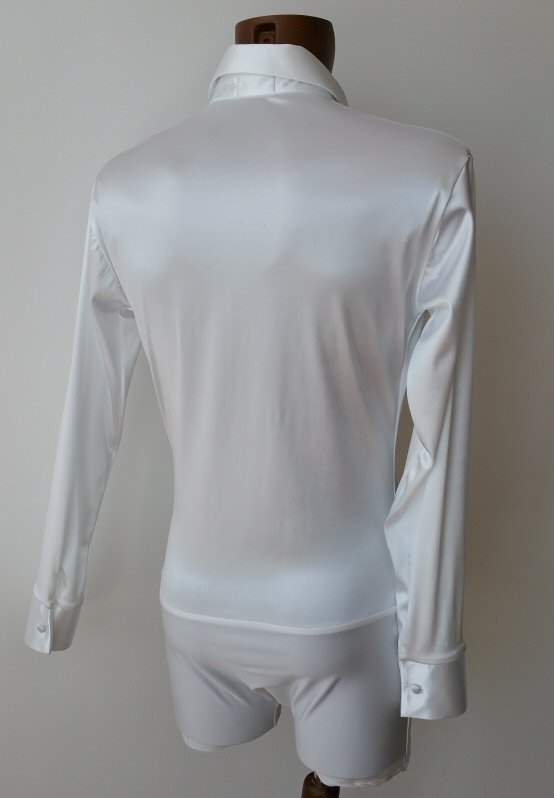 This latin body shirt comes with satin collar, cuffs and two breast pockets. |